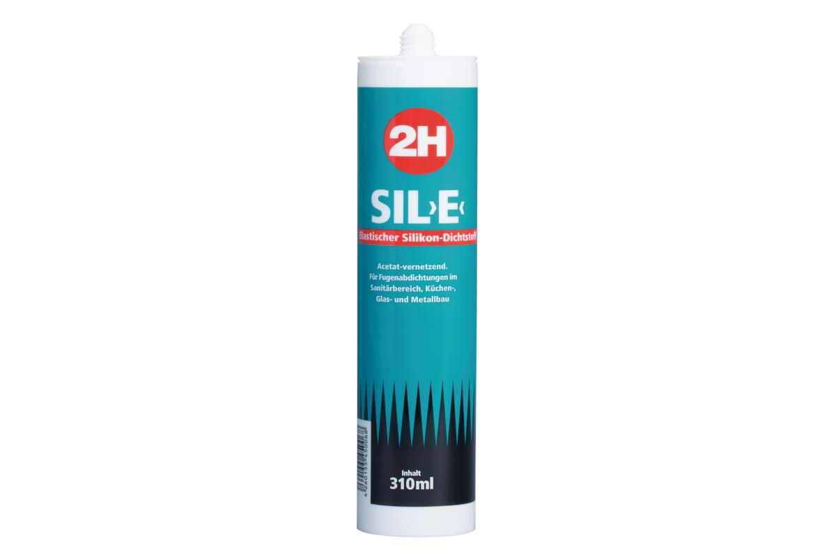2H SIL E ist ein sehr hochwertiger elastischer einkomponentiger Silikon-Dichtstoff. 2H SIL E ist acetatvernetzend, d.h. essigvernetzend und pilzhemmend (fungizid) ausgerüstet. 2H SIL E ist ein Sanitärsilikon, es haftet ohne Primer auf vielen Untergründen wie z.B. Fliesen. Der Untergrund muss tragfähig, sauber und trocken sein. Insbesondere Staub sollte vor dem Verfugen entfernt werden. 2H SIL E enthält Biozide, um lange gegen Schimmel vorzubeugen. Es ist nicht für Natursteine oder mineralische und metallische Untergründe wie Putz o.ä. geeignet. 2H SIL E Sanitärsilikon gibt es in über 50 Farbtönen. Hauptsächlich ist 2H SIL E Sanitärsilikon für den Sanitär- und Küchenbereich, Glasbau und weiteren vielseitigen Einsatz geeignet. 2H SIL E härtet ca. 1-2mm pro Tag aus, abhängig von der Umgebungstemperatur und der Luftfeuchtigkeit. Die Gesamtverformung beträgt 25%.