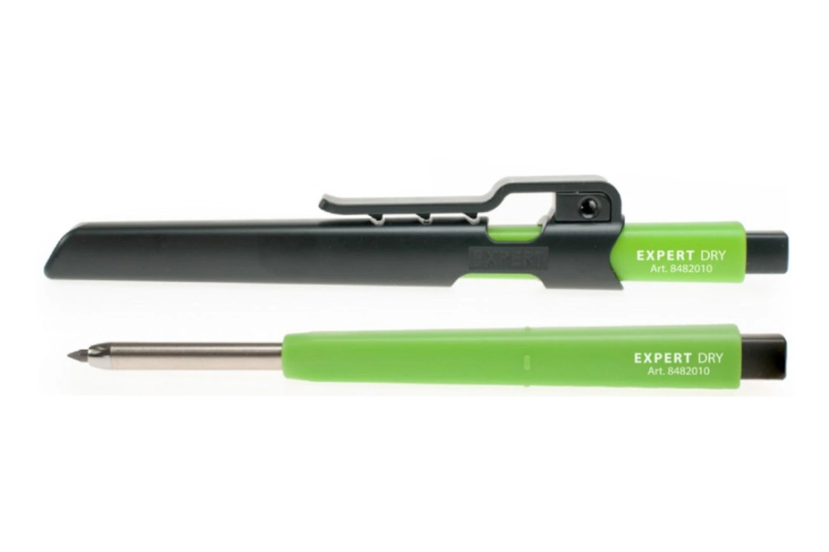 Markierstift inkl. 1 schwarzen Mine, zur Beschriftung auf nahezu allen Oberflächen. Minenautomatik auf Knopfdruck rein/raus, durch den integrierten Spitzer dünneund dicke Striche. Auf glatten Untergründen mit einem feuchten Lappen entfernbar, Hülle mit Gürtelclip ist der EXPERT DRY Stift für sichere Aufbewahrung, nachfüllbar. Geeignet für nahezu alle Oberflächen. Praktischer Markierstift mit Minenautomatik. Einfach nachfüllbar. In der Kappe ist ein Spitzer integriert.