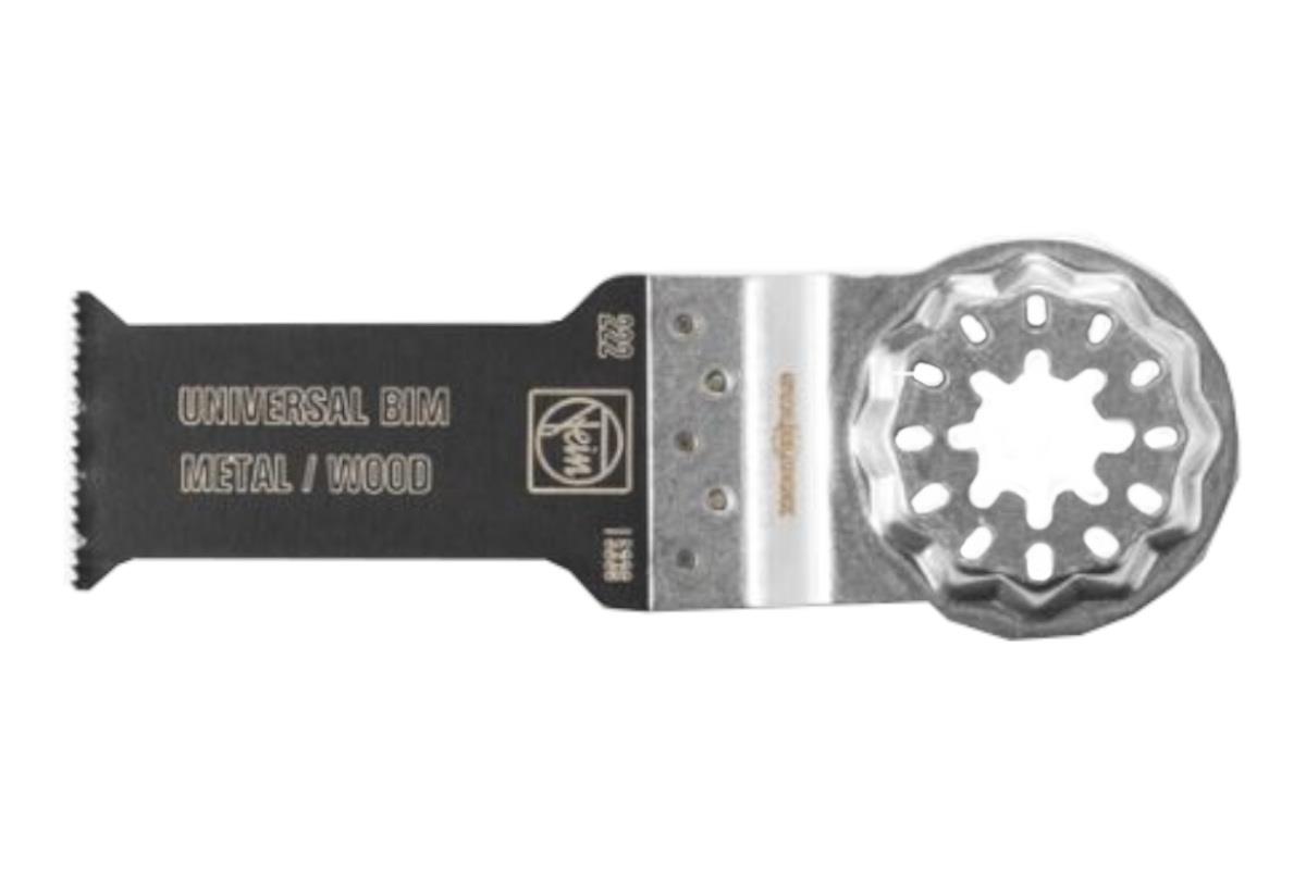 Bi-Metall mit gewellter Universalverzahnung. Breites Anwendungsspektrum für Blech bis 2 mm, Alu-Profile, Cu-Rohre, Holz, Gipskarton und Kunststoffe. Schmale, taillierte Form für optimale Schnittgeschwindigkeit und gute Spanabfuhr. 55mm lang und 28mm breit. Aufnahme STARLOCK. Für alle Fein Multitools und sonstige Multitools mit Starlock-Werkzeugaufnahme. Fein-Nummer: 63502222210