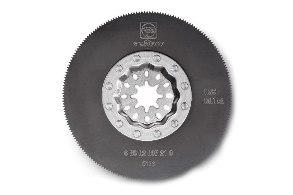 Voll-HSS-Sägeblatt mit Metall-Verzahnung für Blech bis ca. 1 mm. Kreisförmig. Auch für Kunststoffe, GFK, Holz, Kitt und Buntmetalle. Hervorragende Schnittgeschwindigkeit. Saubere, dünne Schnittlinie. Ø 85mm. Ausnahme STARLOCK. Für alle Fein Multitools und sonstige Multitools mit Starlock-Werkzeugaufnahme. Fein-Nummer: 63502097210