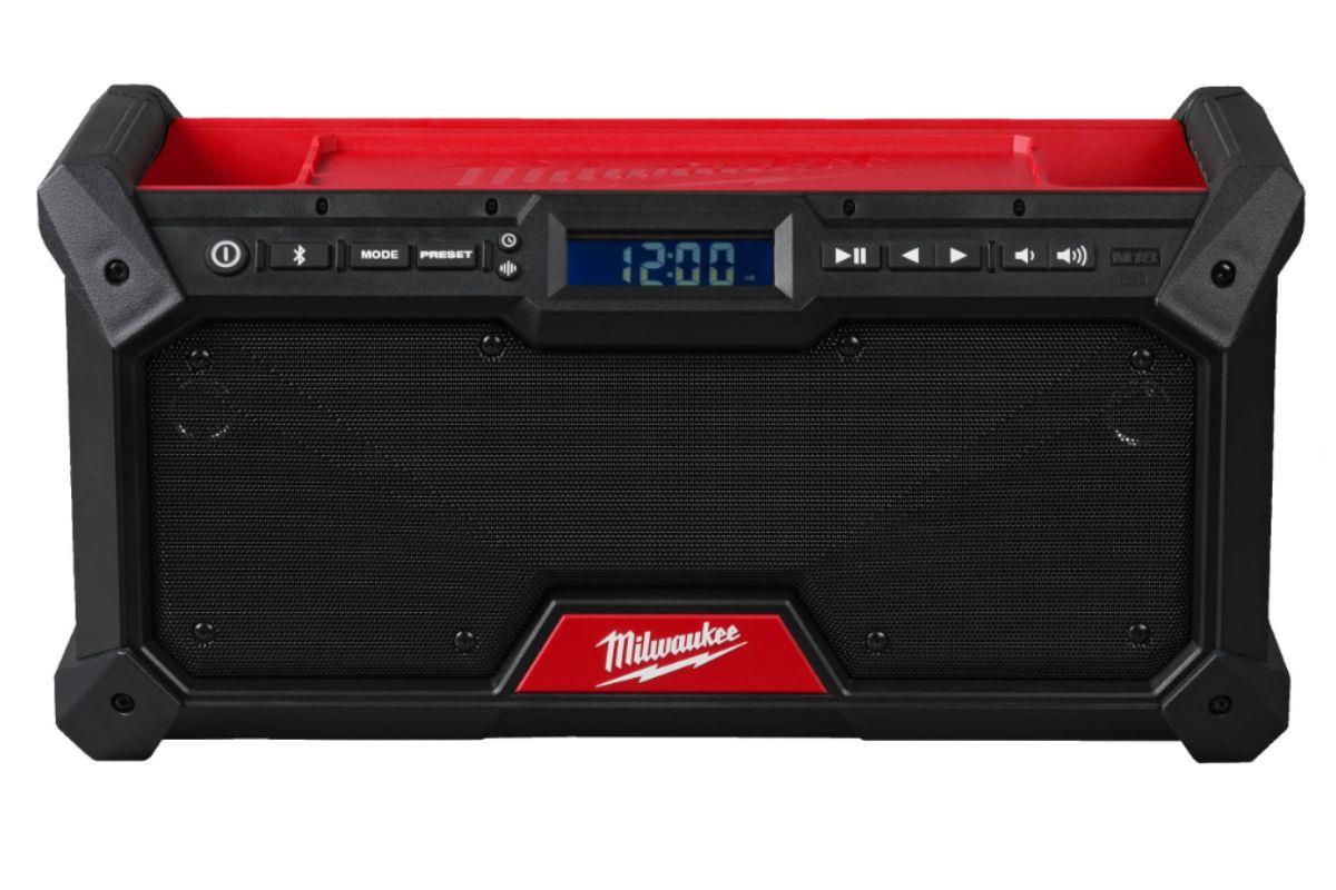 Leistungsstarkes Audiosystem - DAB+/FM-Empfänger mit digitalem Prozessor liefert hohe Empfangsgenauigkeit und Signalklarheit Digitaler Bluetooth-Empfänger, spielt Musik in bis zu 30 m Entfernung von Ihrem Smartphone, Computer oder Tablet ab Integrierte Griffe und Aufbewahrungsmöglichkeiten an Bord ermöglichen den einfachen Transport und die Aufbewahrung von Handys Zwei 8,89-cm-Klangregler sorgen für ausgewogenen und klaren Klang Zwei-Hochtonlautsprecher mit einem klaren Höhenklang Anpassbarer Klangregler für verbesserte Klangqualität und Voreinstellungen für 18 Stationen Stoßdämpfende Endkappen und Lautsprechergitter aus Metall schützen vor Stürzen, Wasser und Schmutz auf der Baustelle Geschützte USB-C-Steckdose lädt elektronische Geräte sowohl im AC- als auch im DC-Modus auf Stromversorgung über MILWAUKEE M18-Akkus oder Netzanschluss Bis zu 13 Stunden Betriebszeit mit einem M18 REDLITHIUM 5,0 Ah-Akkupack Nullversion: ohne Akku / Ladegerät